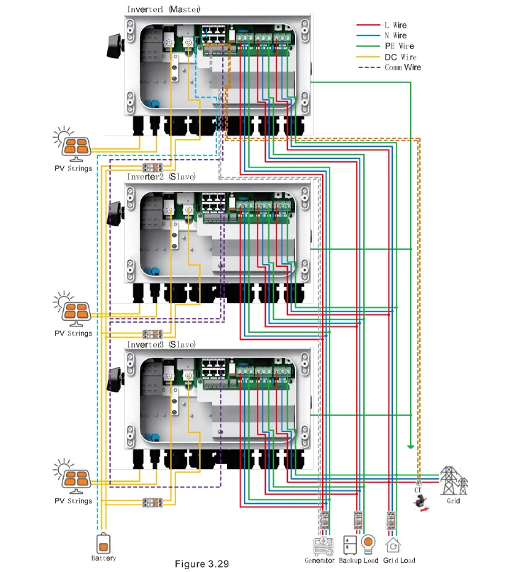 I / II (PV and BAT), III (MAINS and BACKUP and GEN)