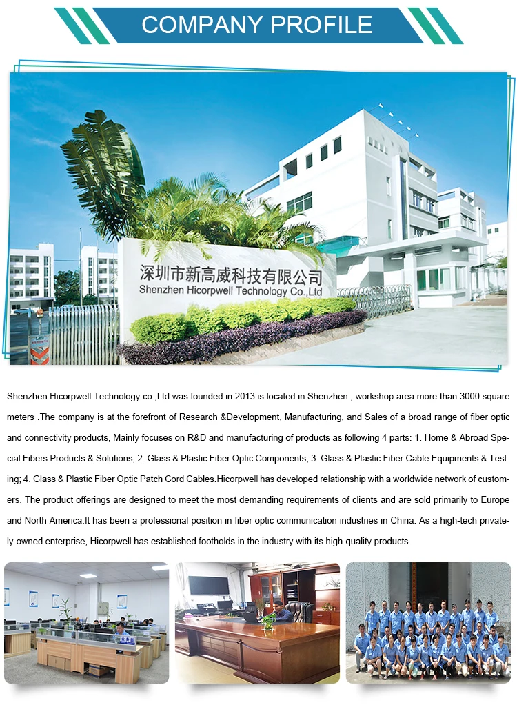 Hicorpwell has 8 years of Research&Development, Manufacturing, and Sales of a broad range of special fibers& hybrid cables and connectivity products, including fiber cable,network cable,waterproof connectors , fiber optic accessories pro etc.