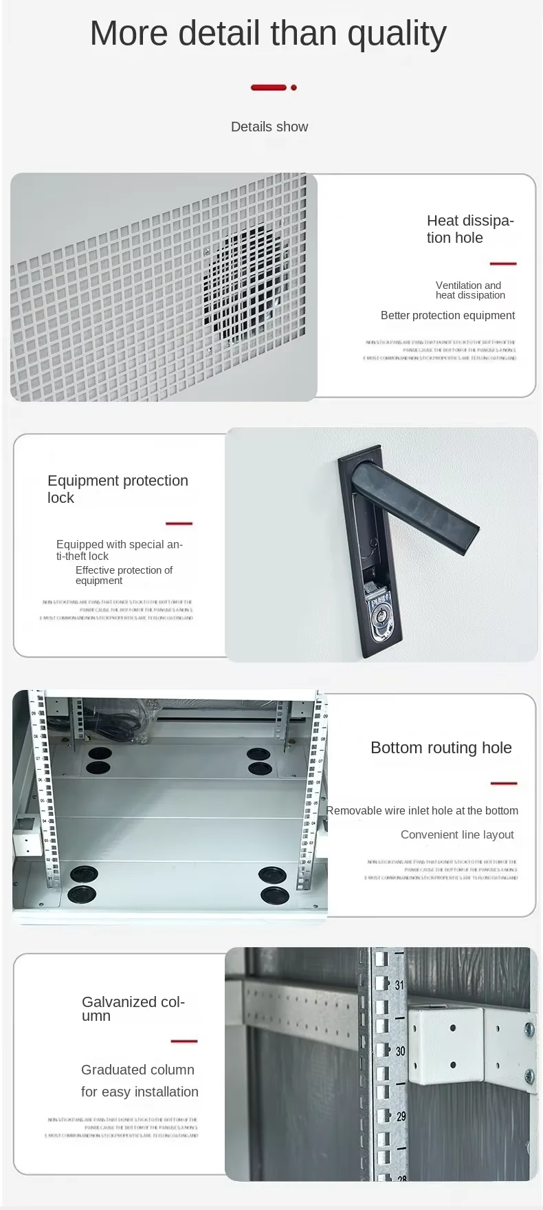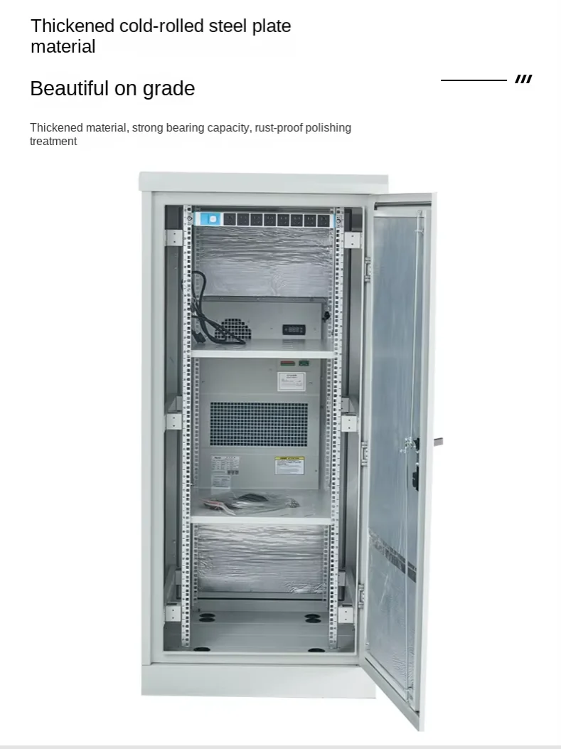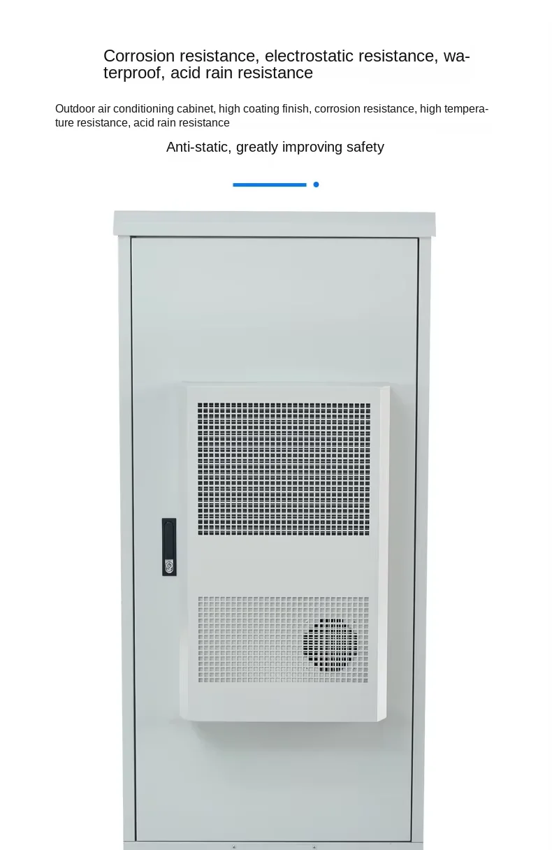 Outdoor cabinet, corrosion-resistant, anti-static, waterproof and acid rain resistant, high coating finish, corrosion-resistant, high-temperature and acid-rain resistant, anti-static, greatly improving safety.It is suitable for various scenarios such as highway ETC, 5G base station, outdoor square, mountain top, rooftop, railway, etc., effectively reducing the difficulty and cost of the construction of small and micro computer rooms.