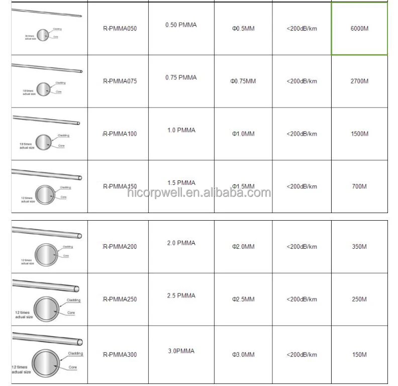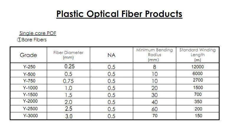 POF Dia 0.25 0.5 0.75 1.0 1.5 2.0 2.5 3.0 mm Optical Fiber Lighting Optical Plastic Fiber Led Fiber Optic Lights