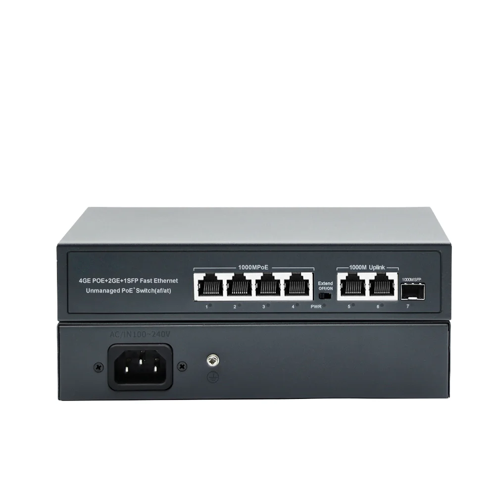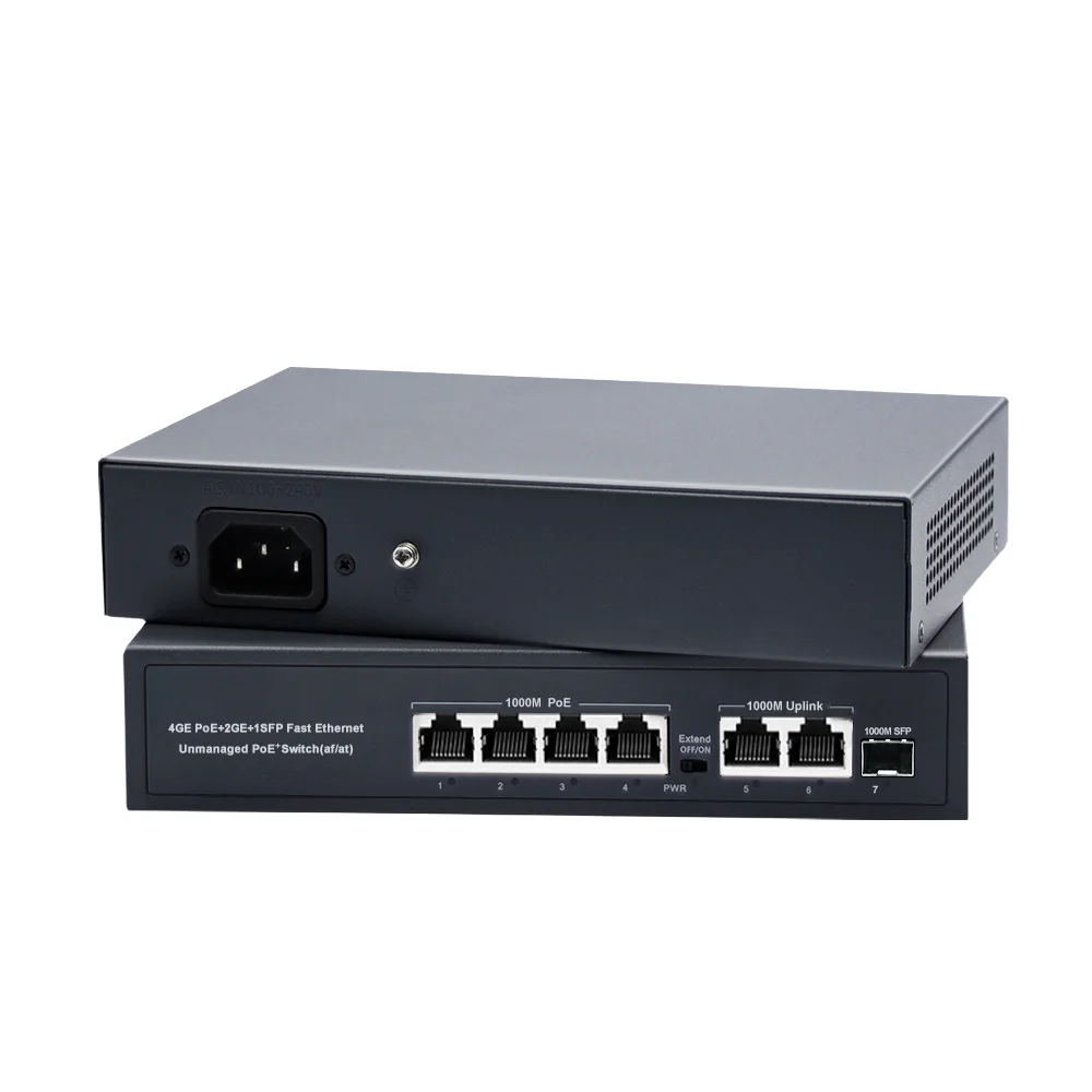 OEM HX-0403PEG Custom 4+2+1 Port Gigabit POE Switch 65W SFP for IP Camera Systems 14Gbps Capacity 10/100/1000Mbps Custom Mold