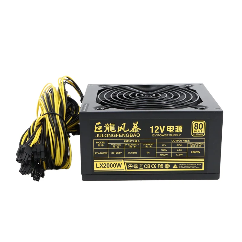 Julongfengbao 2000W ATX Power Supply 110V-240V Long Cables 4U Rackmount 6+2pin 6pin Interface for 8 Graphics Cards Server