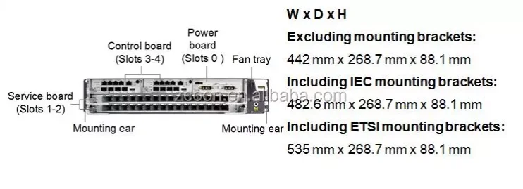 The MA5800 supports four types of subracks.The only difference between these subracks relies on the service slot quantity (they
