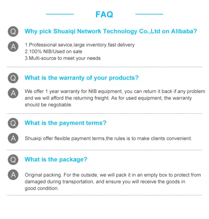 Our company sells RRUs, BBUs, switches, routers, base station antennas, embedded power supplies, transmission equipment, communication power cabinets, storage devices, optical cables and fibers, feeder lines, power dividers, power inverters, OLTs, data communication equipment, optical modules, and other products.
