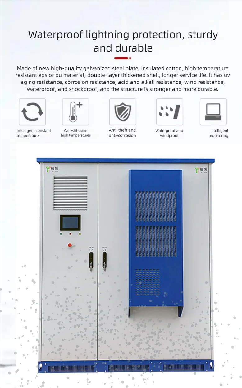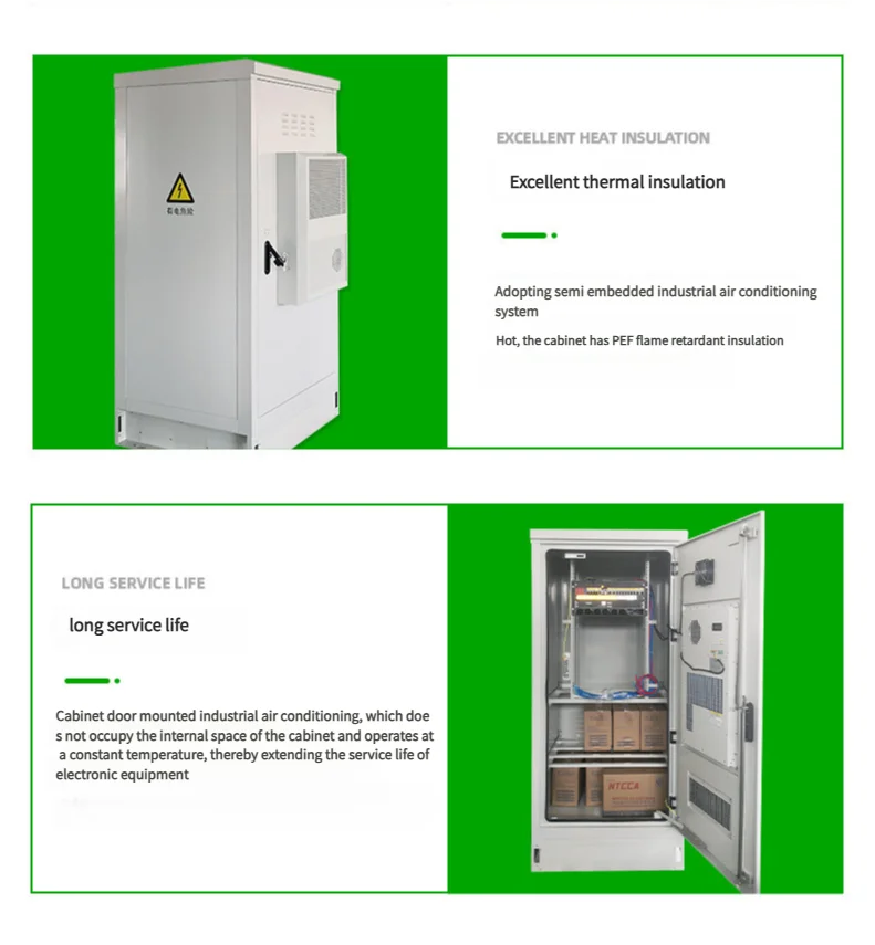 The outdoor integrated energy storage cabinet adopts semi embedded industrial air conditioning/liquid cooling unit/fan unit for heat dissipation, and the sheet metal is treated with professional outdoor powder coating.The overall appearance is beautiful, easy to maintain, and has a constant temperature.It is also anti-theft, waterproof, dustproof, sunscreen, and corrosion-resistant, with a protection level of IP55, which can meet the long-term requirements of harsh outdoor environments.