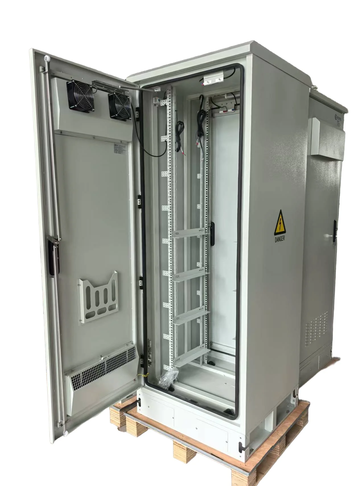 Made of metal or non-metal materials, with a protection level of IP55 or above, it has the ability to prevent dust, water, and corrosion, and can adapt to a wide temperature environment from -40℃ to+60℃.The exterior of the cabinet is mostly made of hot-dip galvanized sheet with a thickness of ≥ 1.5mm, and the metal parts are treated with hot-dip galvanizing to improve weather resistance.Support compartment structure design (equipment compartment, battery compartment, etc.), including heat exchangers, semiconductor air conditioning or direct air cooling systems, which can be quickly deployed and save 70% of floor space.The cabinet door adopts a double opening method, with no exposed screws on the outside to avoid theft through external disassembly.