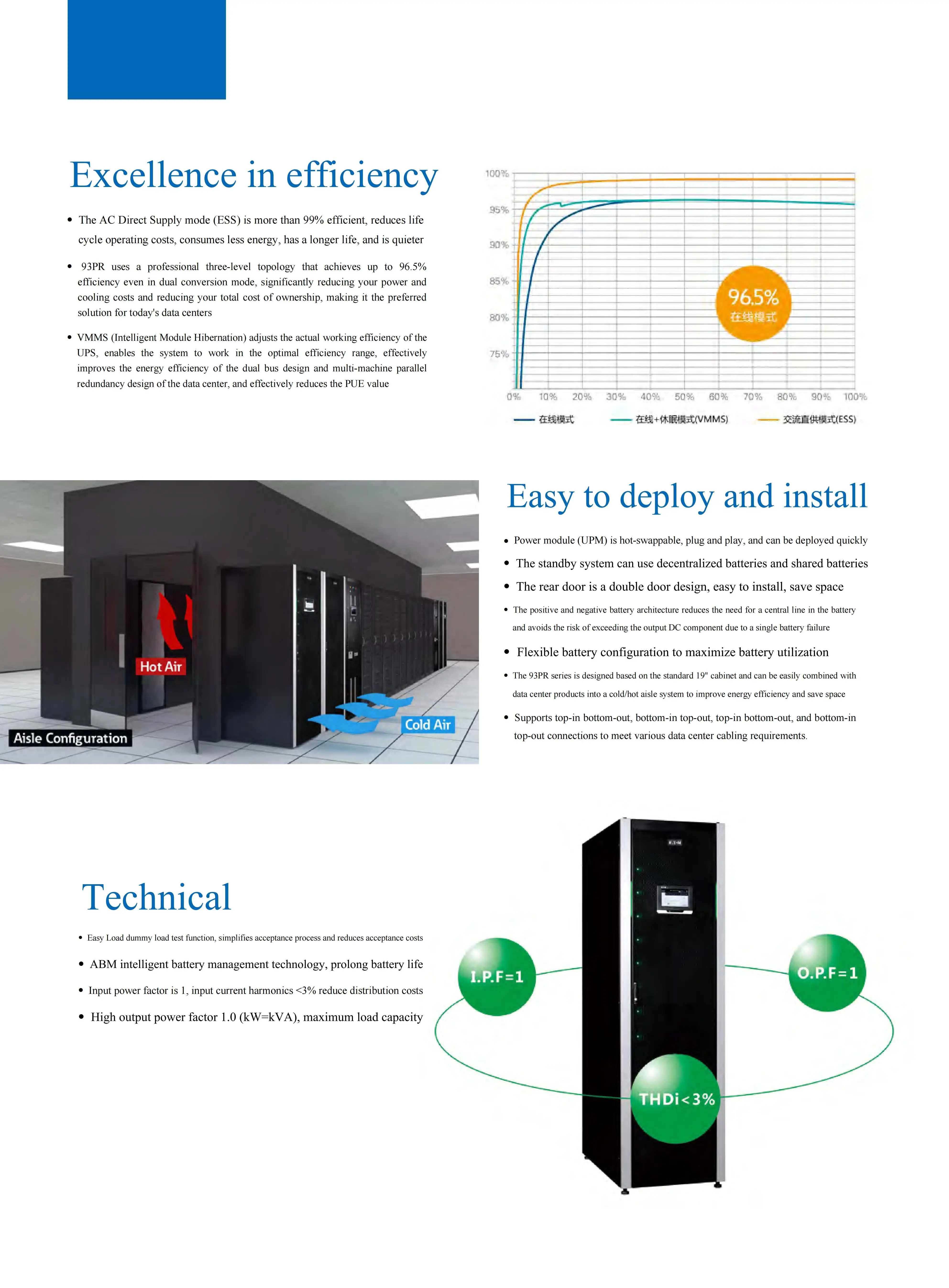 The Eaton 93PR UPS incorporates Eaton's proprietary advanced power electronics technology and is meticulously engineered by Eaton's global team to meet military-grade requirements.This UPS series is designed to fulfill power assurance needs across diverse application environments, including network equipment in wiring closets, small and medium-sized data centers, large-scale data centers, as well as automated industrial or medical facilities.