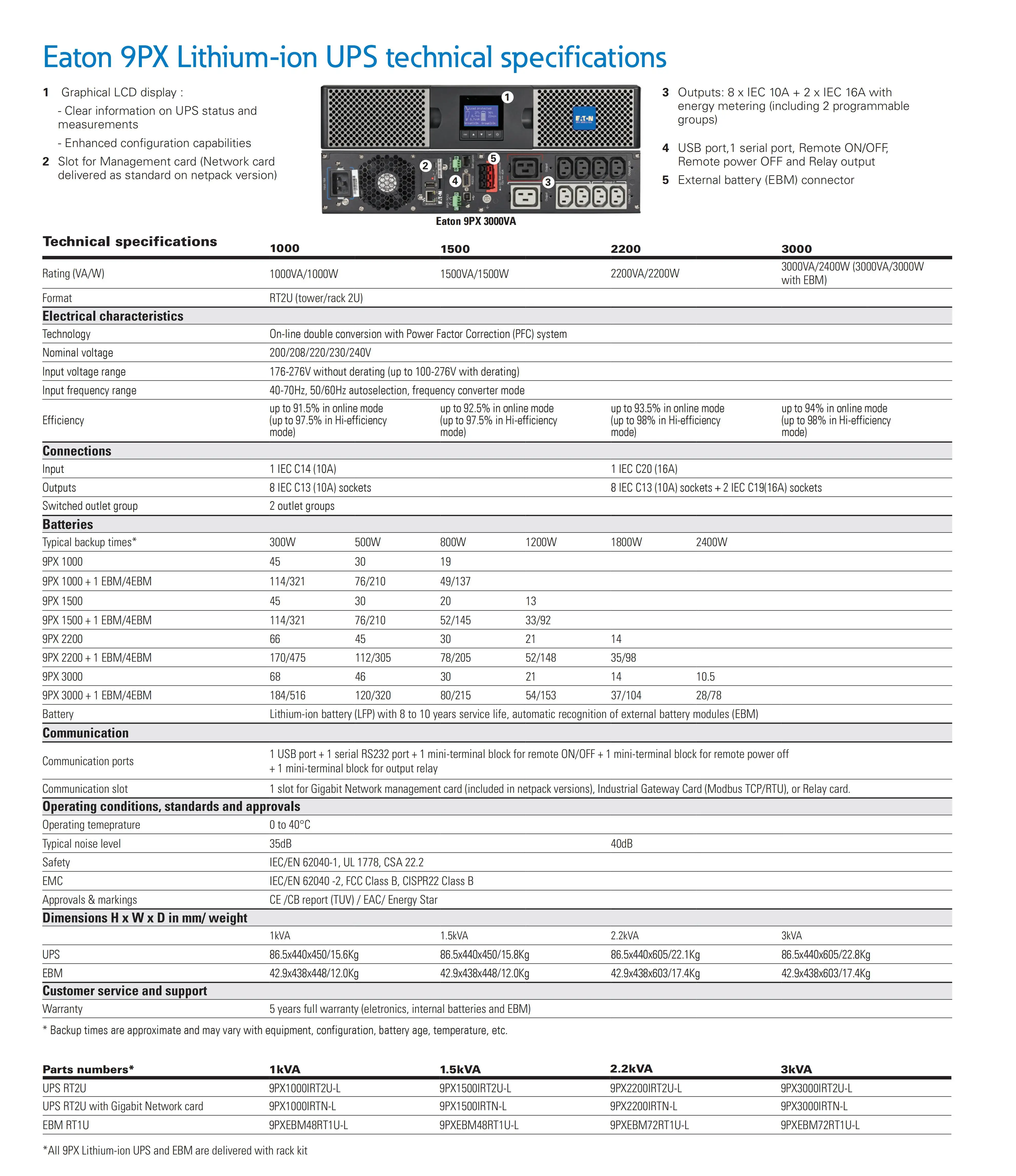 Eaton 9PX Industrial Lithium-ion Battery Pack UPS1000VA-3000VA Rechargeable Fast Charging Black New