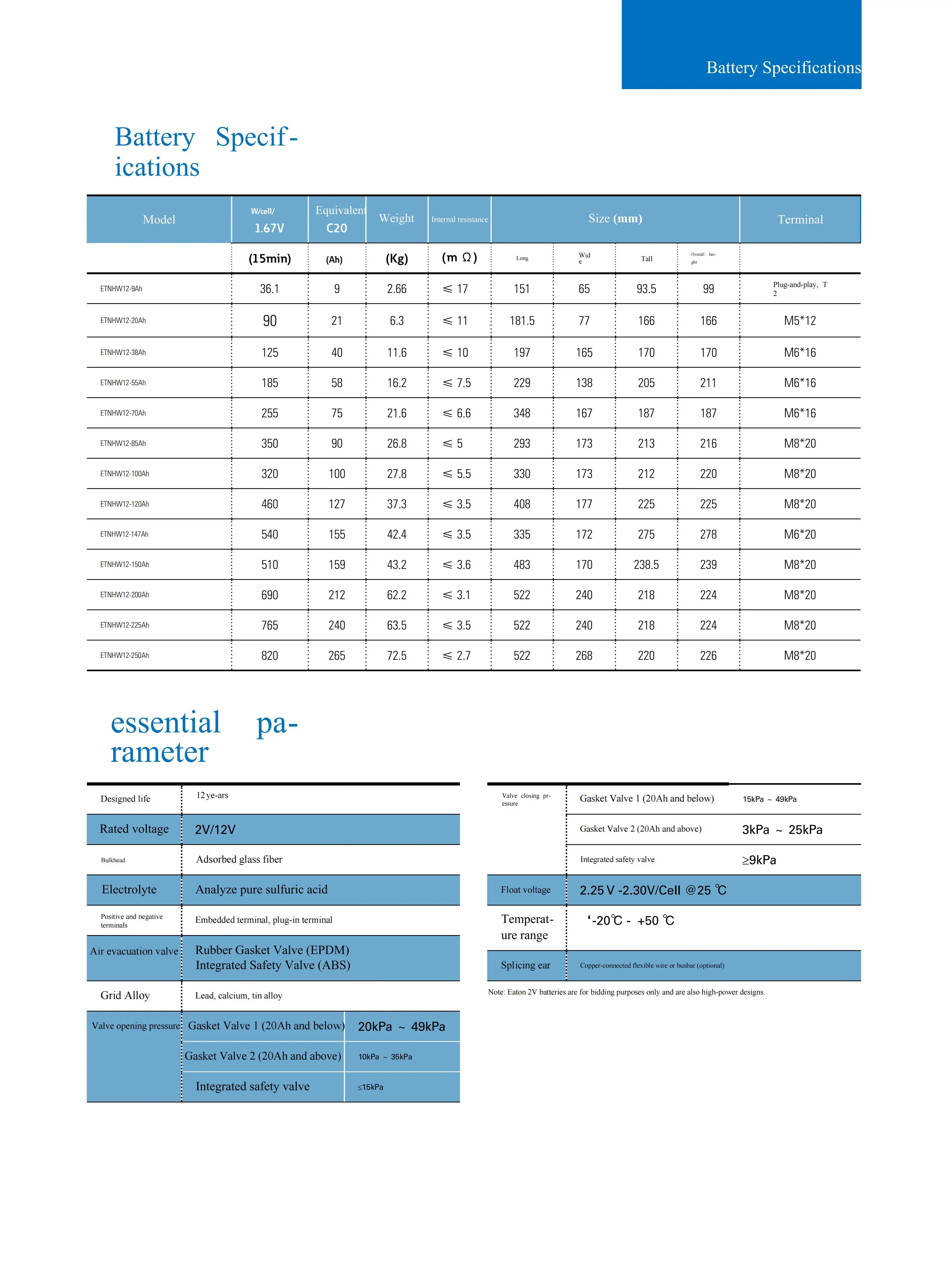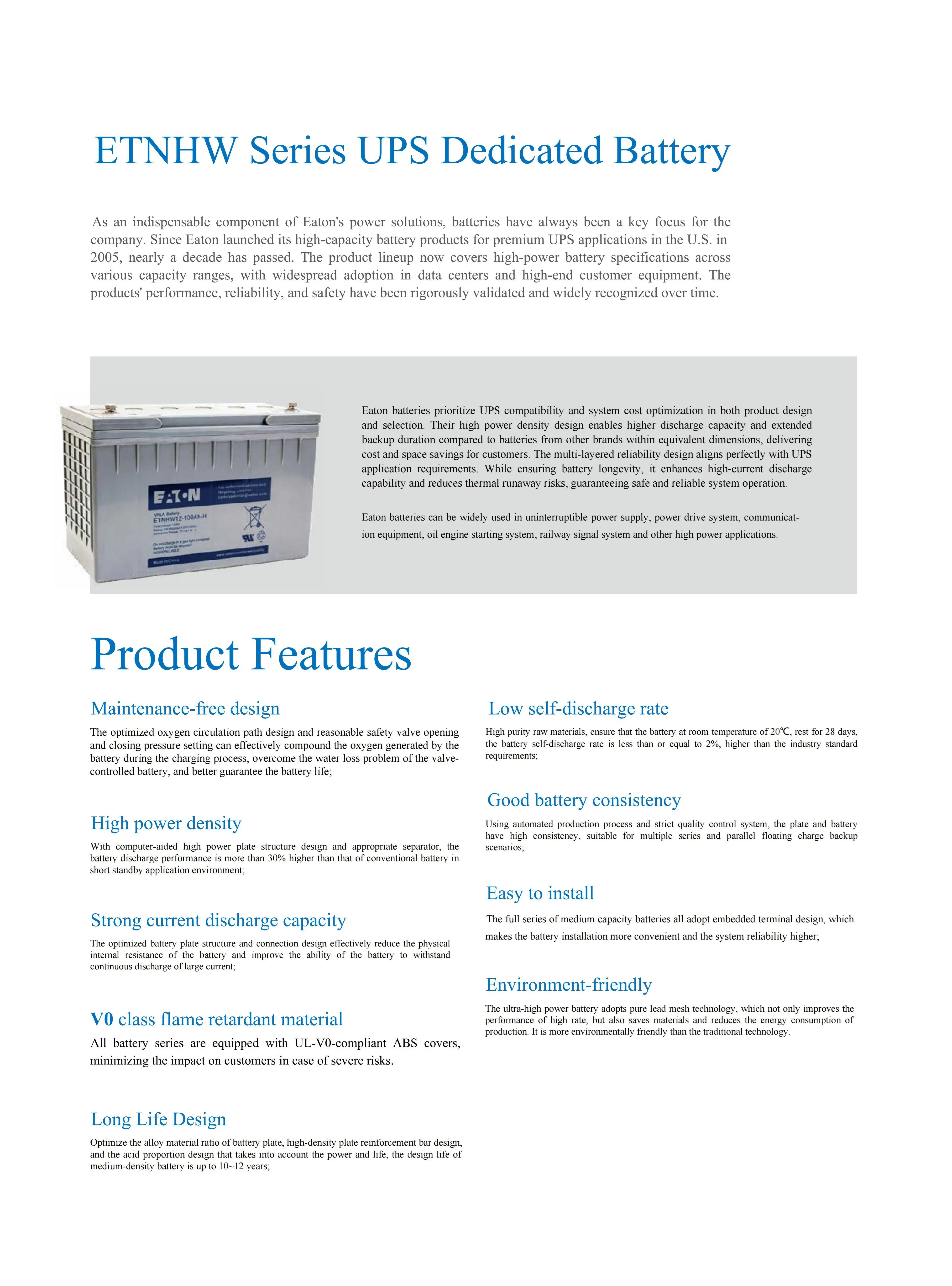 Eaton Industrial Lead-Acid Battery Pack ETNHW Series Rechargeable Fast Charging Black CN