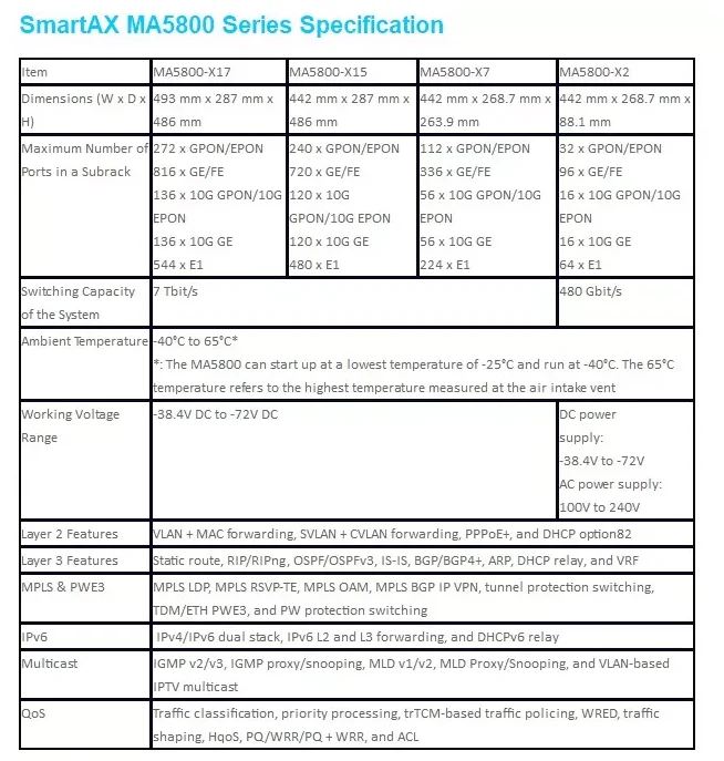 The industry’s first 40 Gbit/s-capacity Next-Generation Optical Line Terminal (NG-OLT).Huawei’s SmartAX MA5800 multiple-service