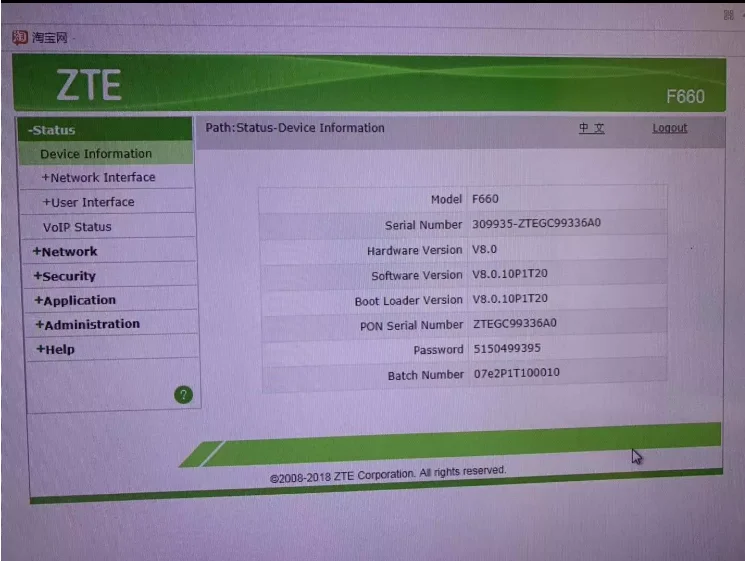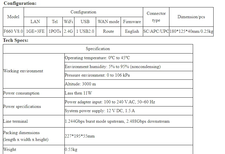 he F660 is a high-end home gateway in ZTE FTTH solution.By using the GPON technology, ultra-broadband access is provided for home