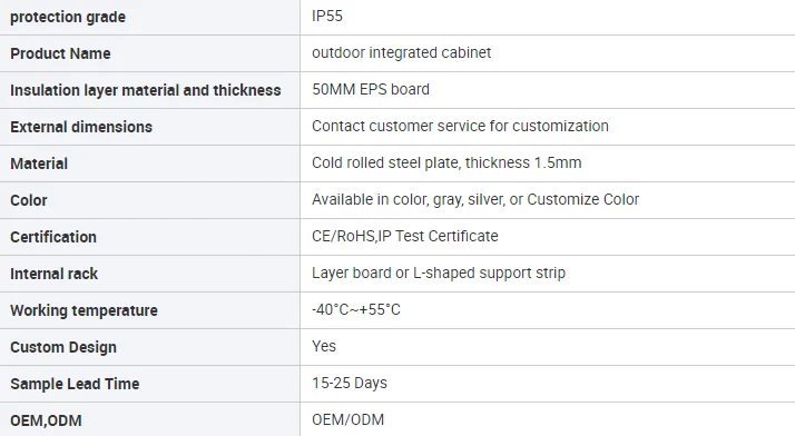 5G outdoor integrated cabinet is a communication equipment cabinet specially designed for outdoor environments, aiming to provide