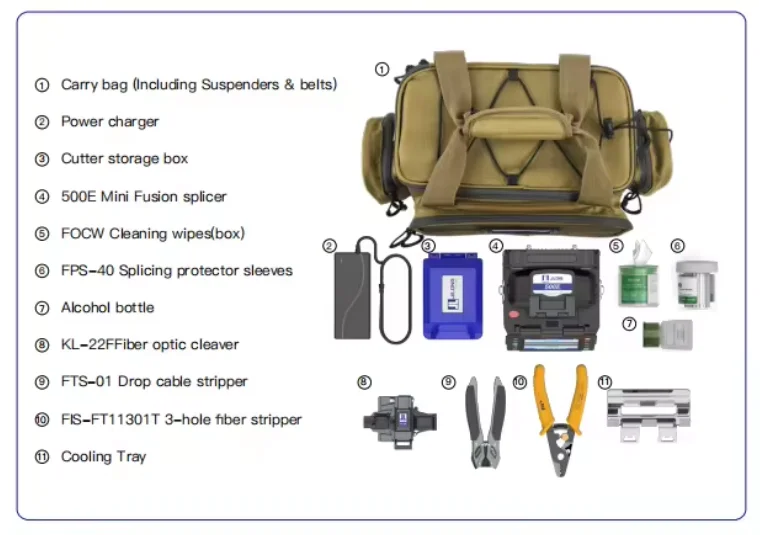 Mini JILONG 500E FTTx Portable Fiber Fusion Splicer.Core Alignment Splicing Machine Fast-splicing 8s, Fast-heating 18s (500E Fusion Splicer)