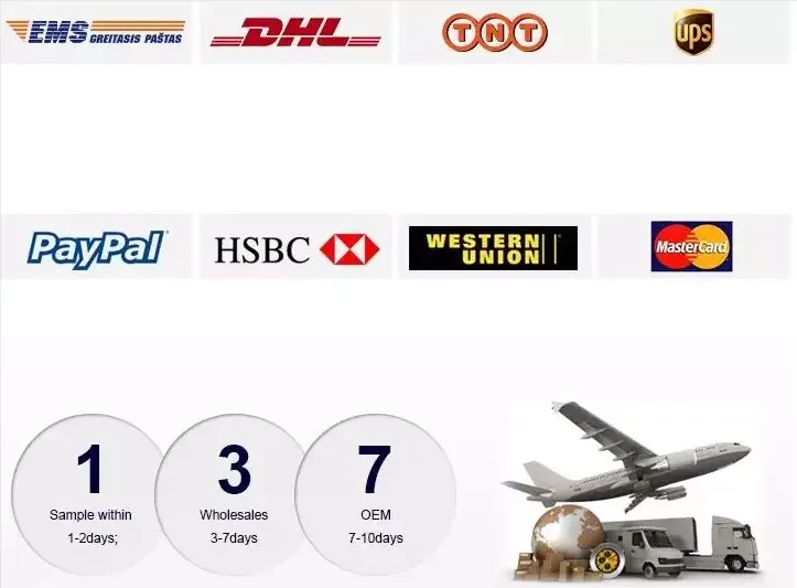 1. We shipping via DHL / FedEx / TNT/etc for samll orders. Yow can get your packages in about 3-5 days all over the world.