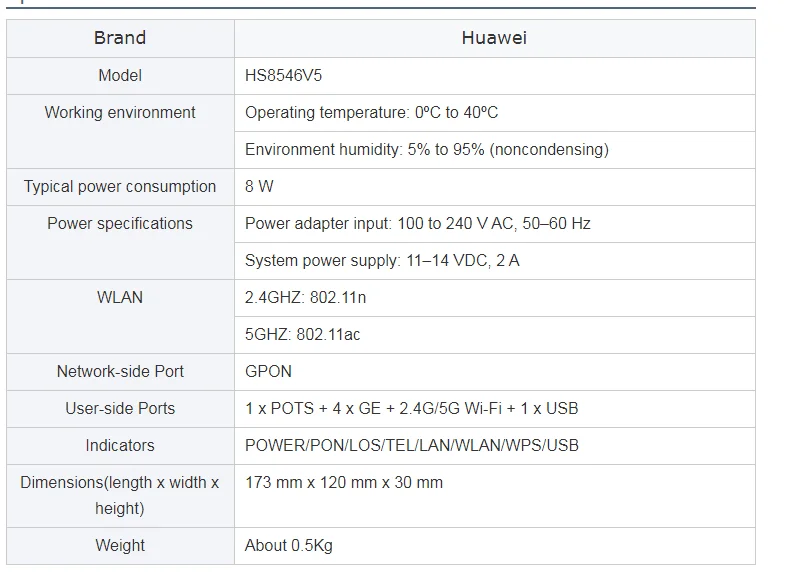 The HS8546V provides 1 POTS port, 4GE Ethernet ports,2USB ports and dual band wireless,2.4G/5G,featuring high-performance