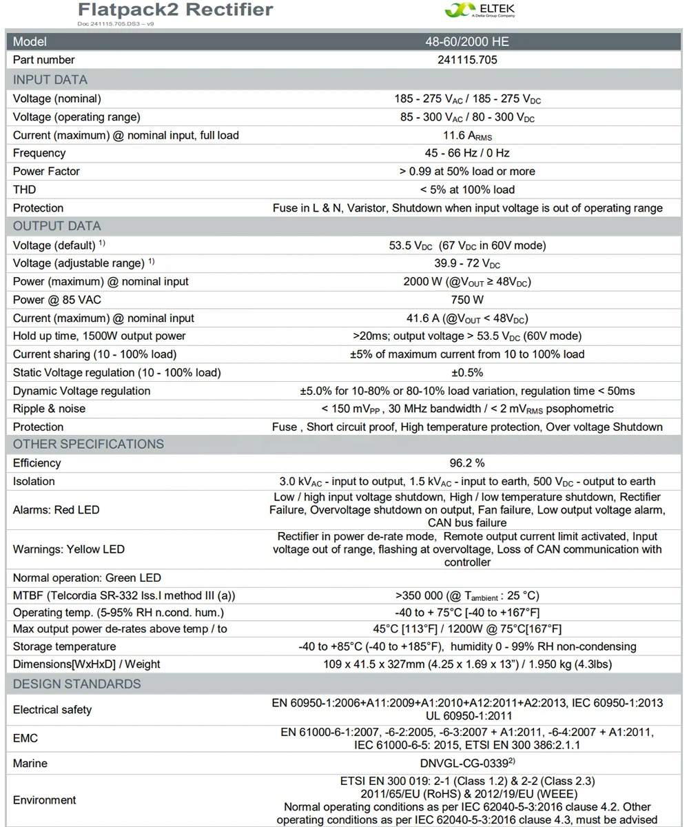 48V-60V/2000W HE is a cost efficient rectifier for 48V and 60V lead acid battery systems as well as 48V NiCad.