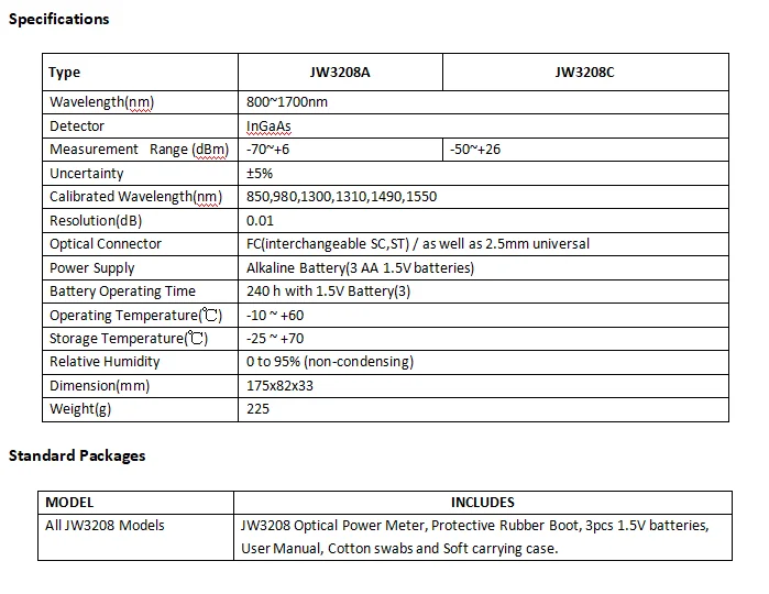 JW3208A fiber optic power meter