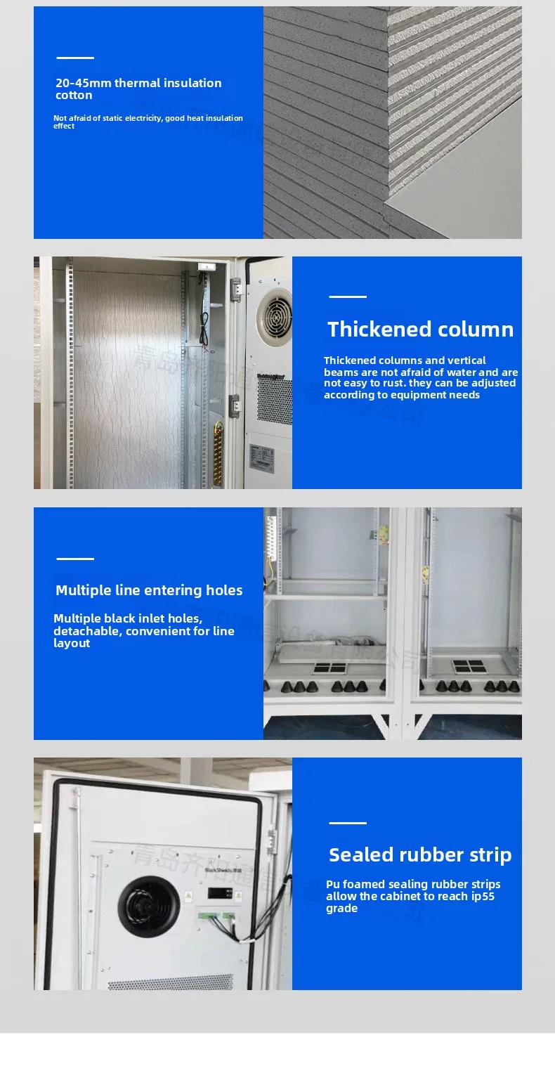 The outdoor integrated FRP equipment cabinet adopts an integrated enclosed design, which can integrate physical infrastructure such as power supply and distribution, air conditioning and cooling, battery backup, and dynamic environmental monitoring and management inside, effectively improving the reliability of the site and saving space. Compared to traditional computer rooms, this design greatly shortens the construction period, reduces single path failure points between functional modules, improves system compatibility, and maximizes the space utilization of user computer rooms.