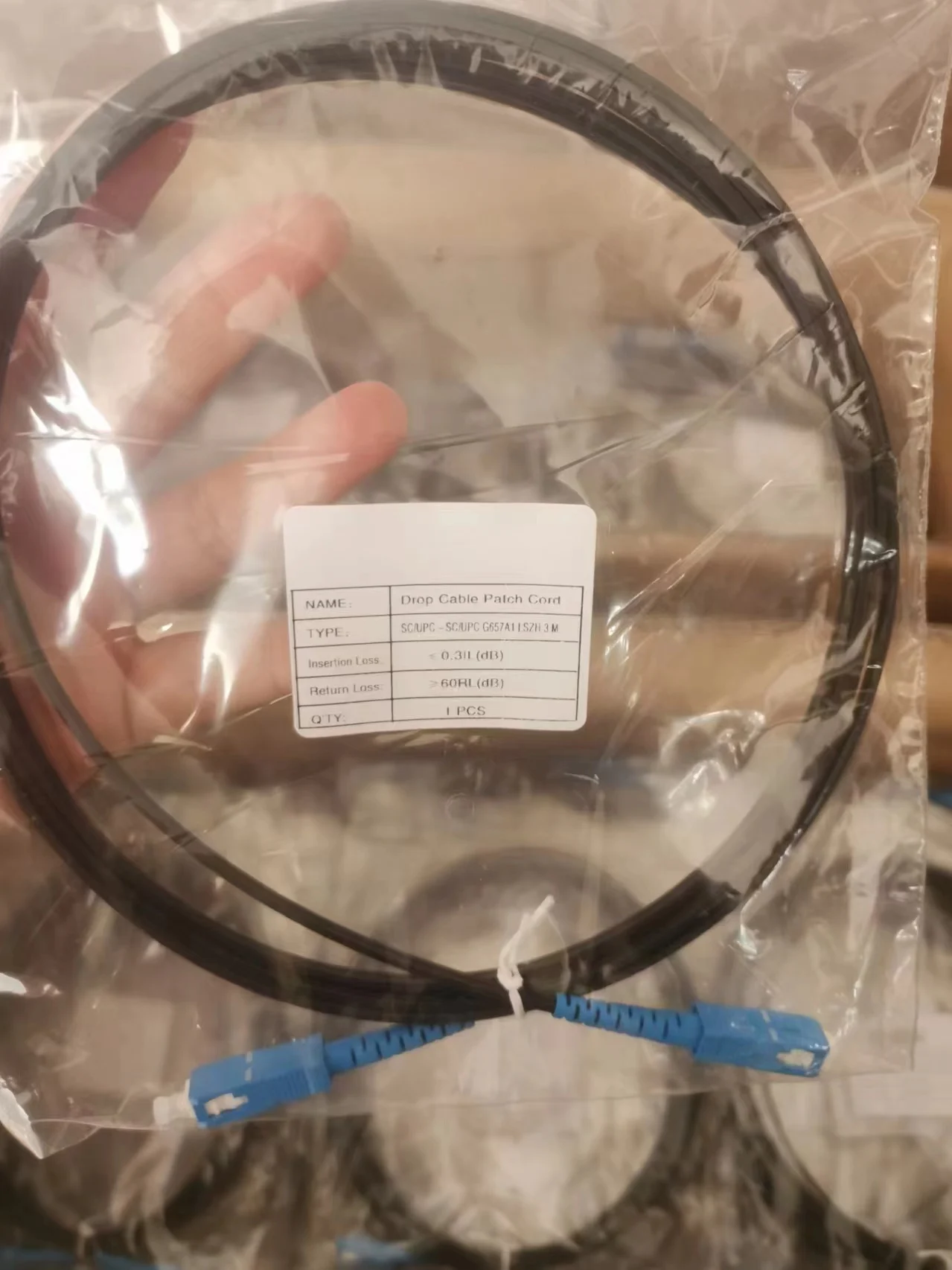 Fiber optic drop cable patch cord has two connectors on each end of the cable.Pigtail cable is one cable with connector.The connectors are SC-type, and have a ceramic ferrule that can be polished as UPC.The SM conversion patch cord has two different connectors.Our high performance patch cords produce high-performance patch cords with advanced grinding technologies, import processing facilities, and scale economy economy. Technical Specifications Item Parameters Insertion loss SM: 0.2dB Return Loss PC□45DB UPC□50DB, APC□60 Fits over 1000 times. Breed insertion loss<; 0.20dB 0 ="3DB ="" TD ="" Temp. -40~+85 Tensile Strength 100.9 lbs (45 kg) (excluding 0.9 SM fiber) Vibration Test <; 0.1 dB (5 - 50 Hz, 1.5 SM Amplitude) Products Details: 1.SC-SC Single Mode Simplex Drop Cable Patch Cord 2.Length: 50 meters 3. Color: Black 4.Type: Tensile metal reinforcement 5.Insertion loss:less than 0.3dB; Return loss:more than 50dB 6 For outdoor use.