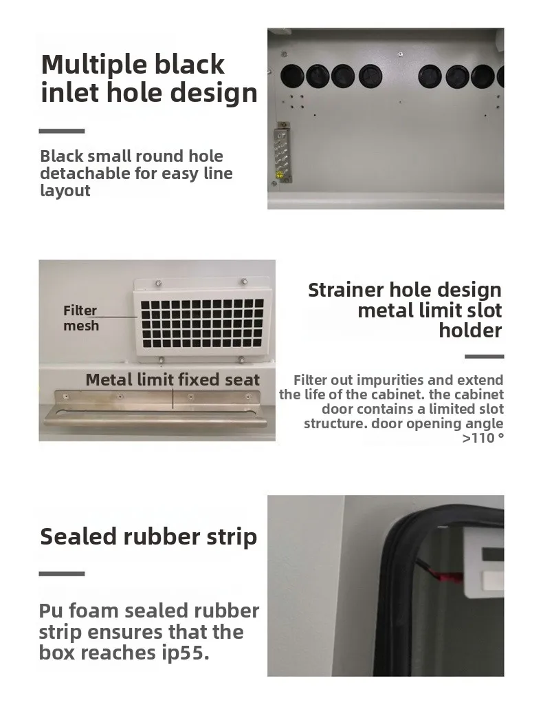 The 5G outdoor communication integrated cabinet adopts anti-corrosion and anti rust materials, and is equipped with a temperature control system and waterproof sealing design inside, ensuring stable operation in an environment of -30℃~70℃.Some high-end models are also equipped with AI algorithms that can predict equipment failures.The 5G outdoor communication integrated cabinet can operate stably in various extreme environments and significantly reduce operation and maintenance costs and complexity through intelligent management, improving overall efficiency and reliability.