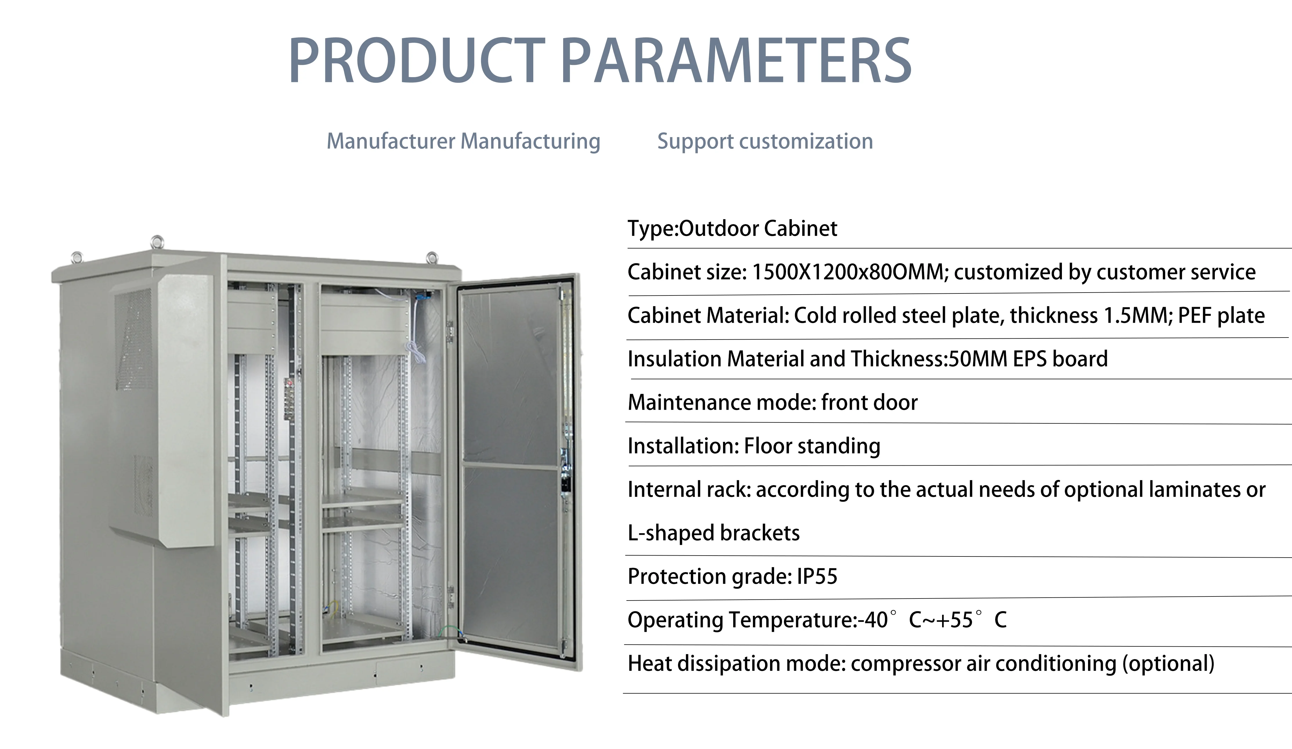 RH IP55 Outdoor Telecom Power Enclosure 1500W 19 Rack Steel Metal Shelter Aluminum Alloy Electronics Stand Galvanized Stainless