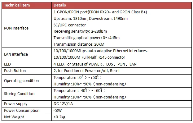 * SupportsGPON G.984/G.988 standards and IEEE802.3ah.