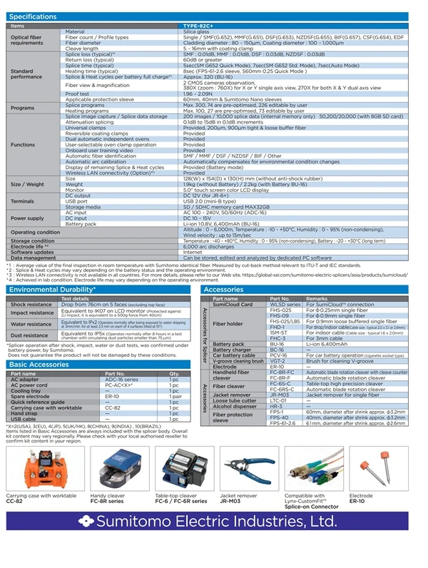 Sumitomo Type-82C+ is a direct core monitoring fusion splicer for ultra fast splicing in every environment.