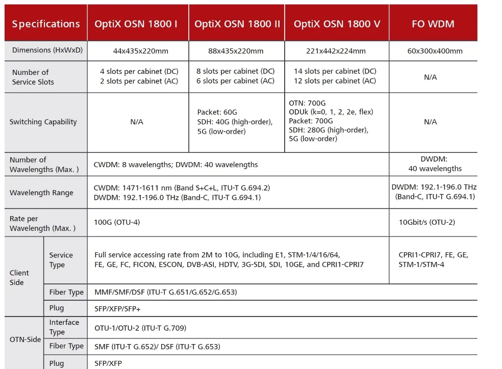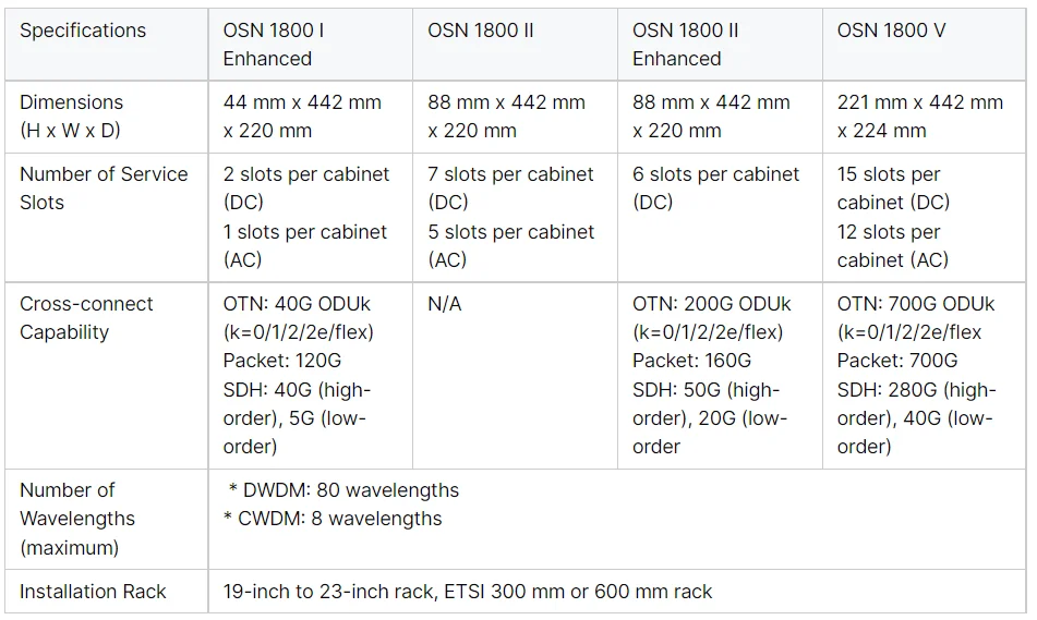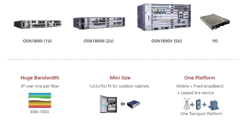 The Huawei OptiX OSN1800 is a series of box architecture Multi-Service Optical Transport Network (MS-OTN) transmission equipment