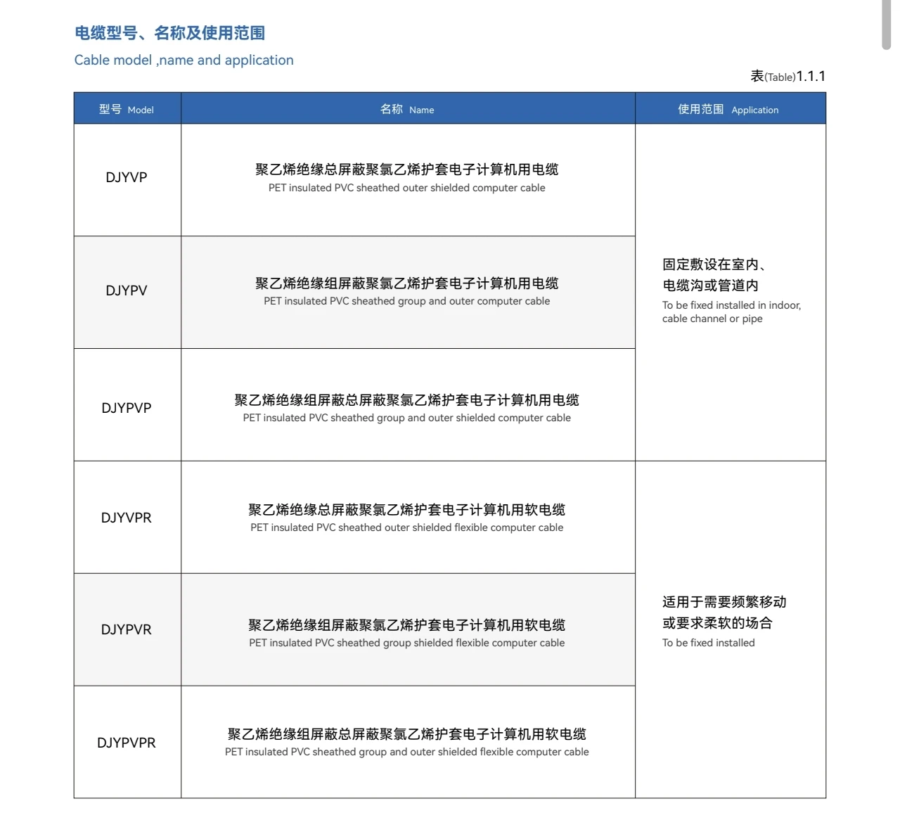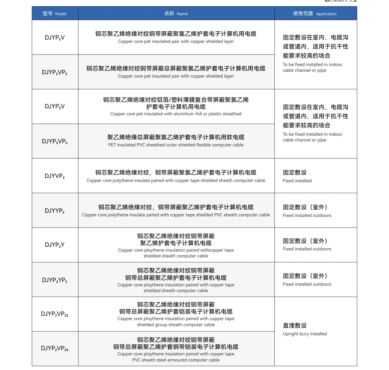total screen (or three-wire group twisted, group shielding, group screen total screen) and other structural forms, with a small dielectric loss, strong transmission signal capacity, good anti-interference performance, etc., can reliably transmit weak analog signals or digital signals, can be widely used in power generation, metallurgy, petroleum, chemical industry, textiles and other sectors of the detection and control of the computer system or automated instrumentation equipment, as well as the general industrial computers.It can be widely used in testing and control computer system or automation instrumentation device in power generation, metallurgy, petroleum, chemical, light textile and other sectors, as well as general industrial computer.