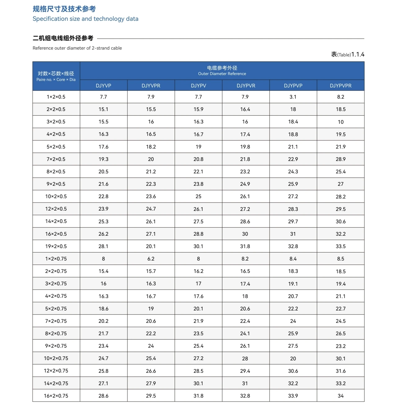 DJYP2V/DJYP2VP2/DJYP3V/DJYP3VP3/DJYVP2/ DJYYP2 Control Cable 300/500V -40~90 Halogen-Free Copper Conductor for CE