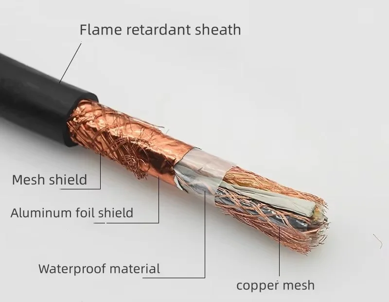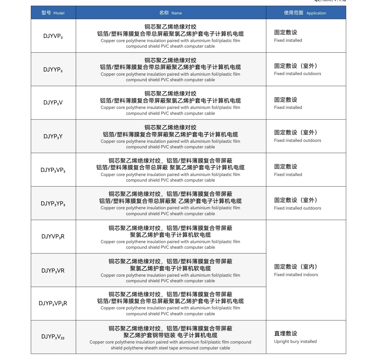 Copper core with polyethylene insulation and twisted pairs, aluminum foil/plastic film composite tape shielding, aluminum foil/plastic film composite tape overall shielding, PVC sheathed electronic computer cable